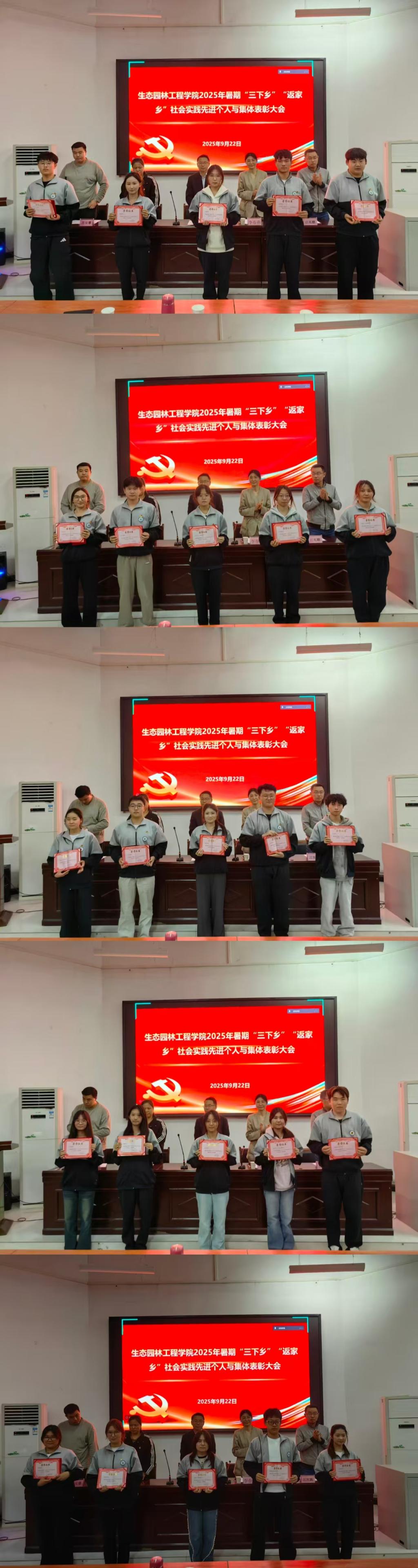9月22日晚,生态园林工程学院在东泉校区以“线上+线下”方式,召开2025年暑期“三下乡”社会实践汇报暨表彰大会。今年暑期,学院师生深入学习贯彻党的二十大精神,以“青春为中国式现代化挺膺担当”为口号,奔赴边疆村寨、扎根基层社区,在“三下乡”社会实践及迎新志愿服务中淬炼青春、建功立业,涌现出一大批勇挑重担、实绩突出的先进个人和集体。为表彰典型、激励奋进,经学院党委研究决定,召开此次大会,学院班子成员、全体辅导员老师及800余名学生及受表彰的学生代表参加。
