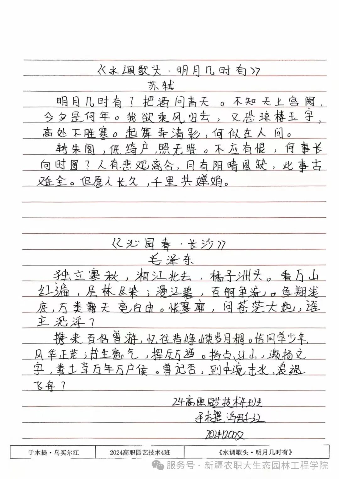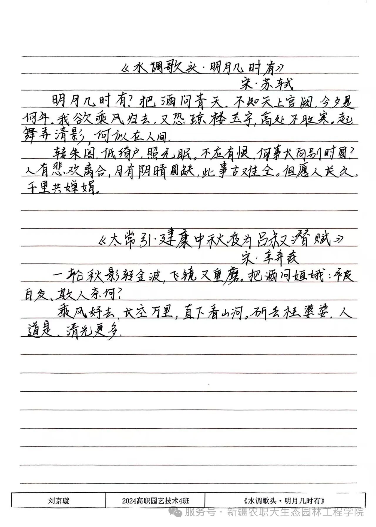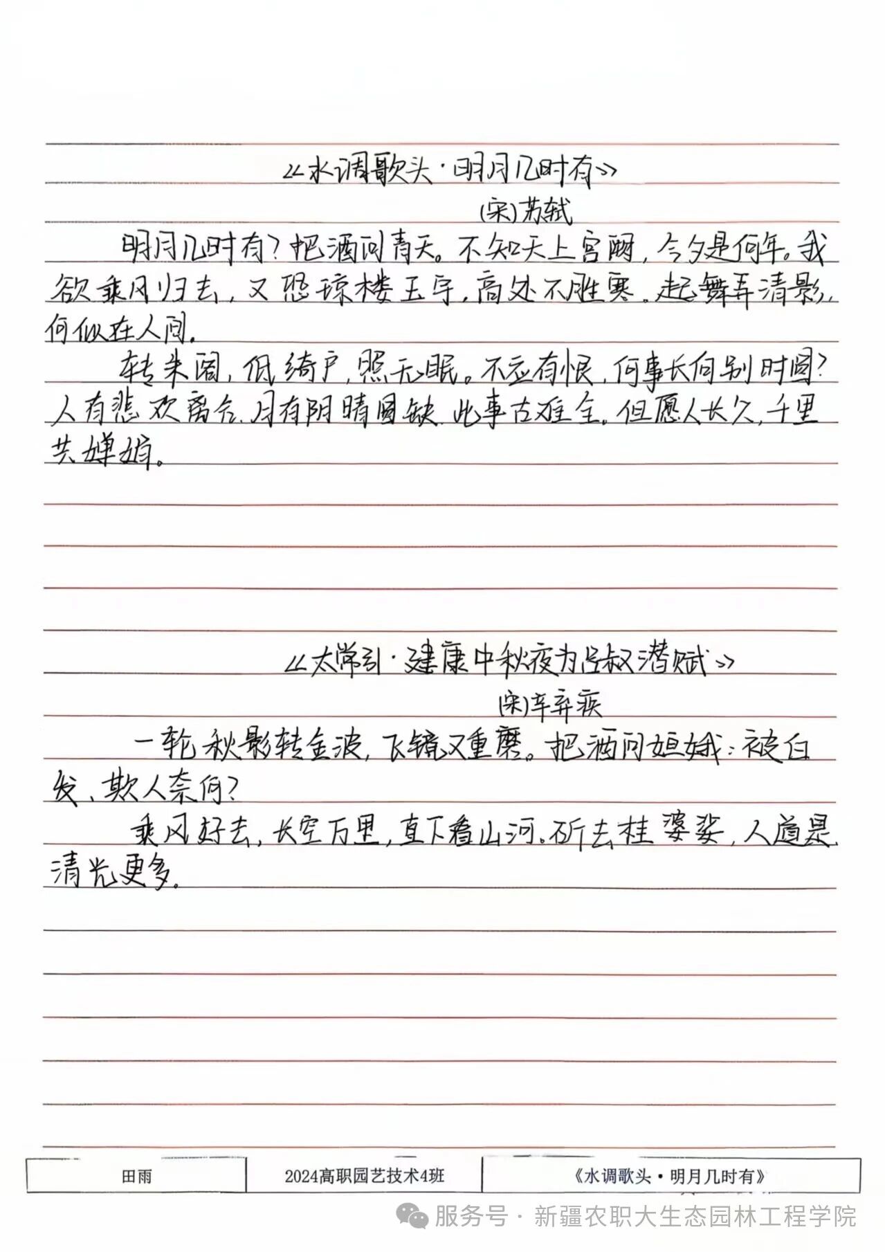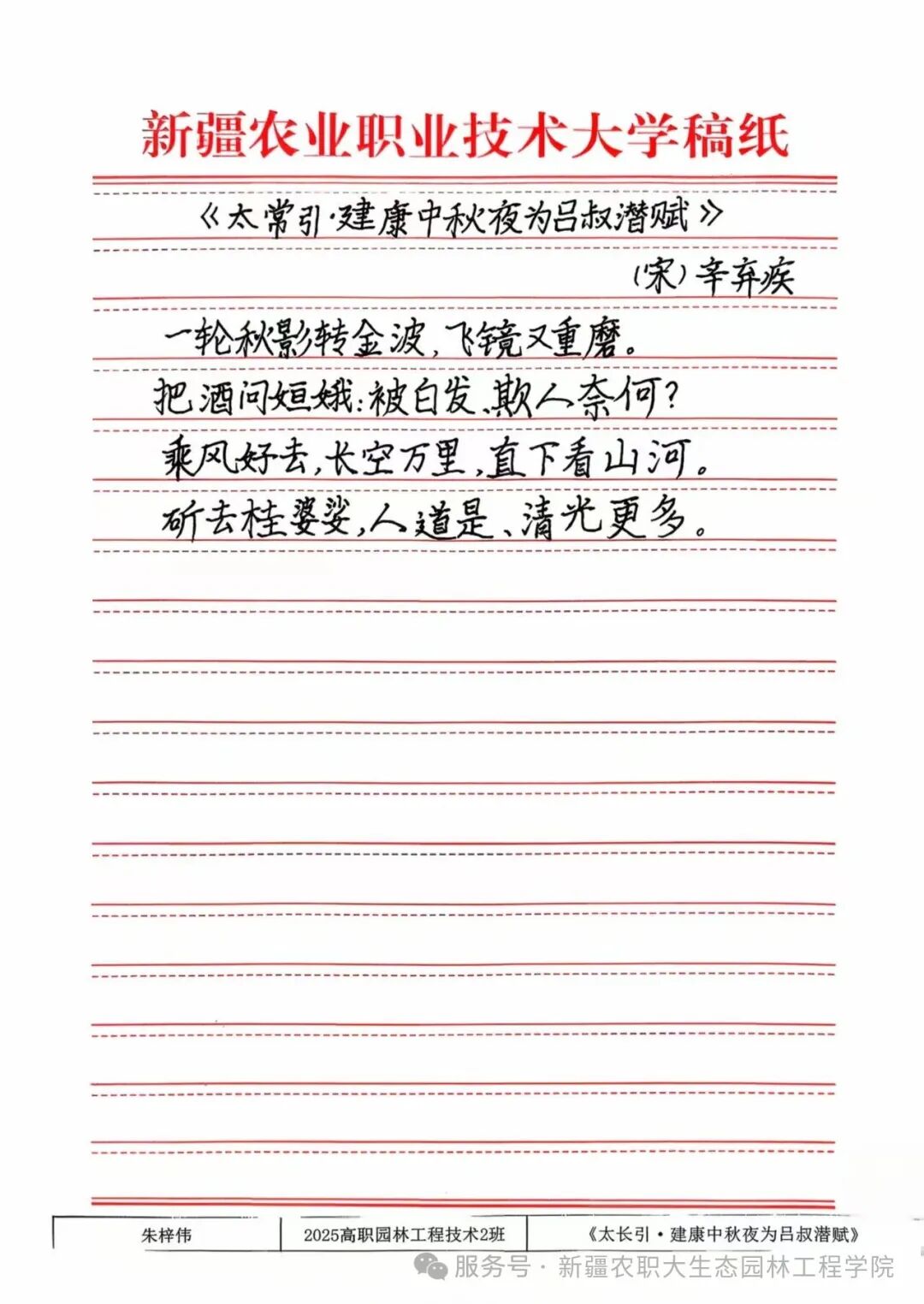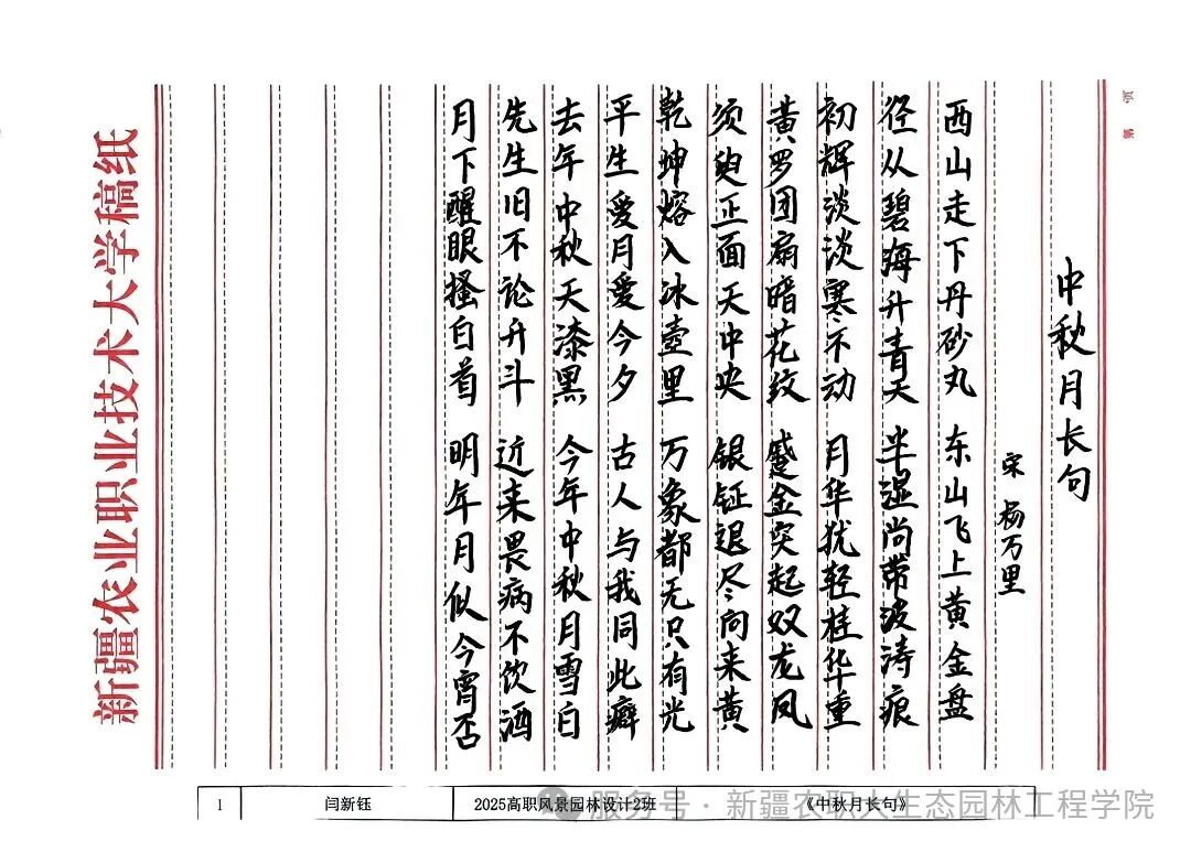 值中秋、国庆双节同庆,新疆维吾尔自治区成立 70 周年之际,为弘扬中华优秀传统文化,厚植文化自信与爱国情怀,营造浓厚校园文化氛围,提升学生汉字书写能力与艺术鉴赏水平,培养耐心、专注的学习品质,生态园林工程学院书法协会特策划“平分秋色 佳节梦圆”硬笔书法比赛,为广大热爱书法的学生提供展示才华、交流学习的平台。