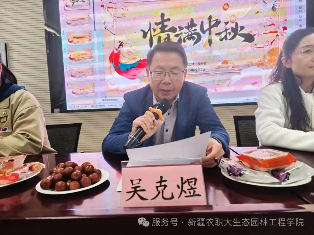 学院党委书记吴克煜同志发表致辞,并向在场的师生致以诚挚的节日问候。他希望师生们能在校园之中,真切体会到团结的浓厚氛围,将家国情怀融入学习与工作中,砥砺奋进,共筑生态园林工程学院新未来。
