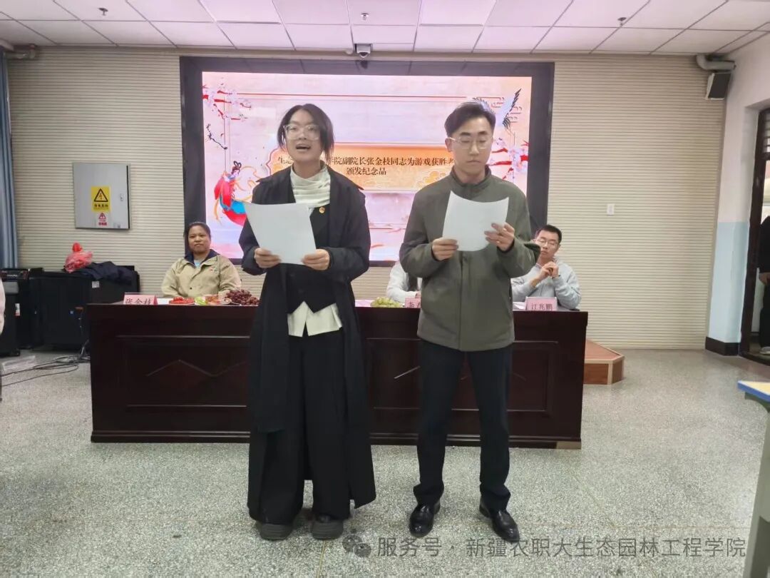 游戏环节结束后,生态园林工程学院副院长张金枝同志为游戏获胜同学颁发纪念品,传递节日温暖,并鼓励大家积极参与学校及学院集体活动。